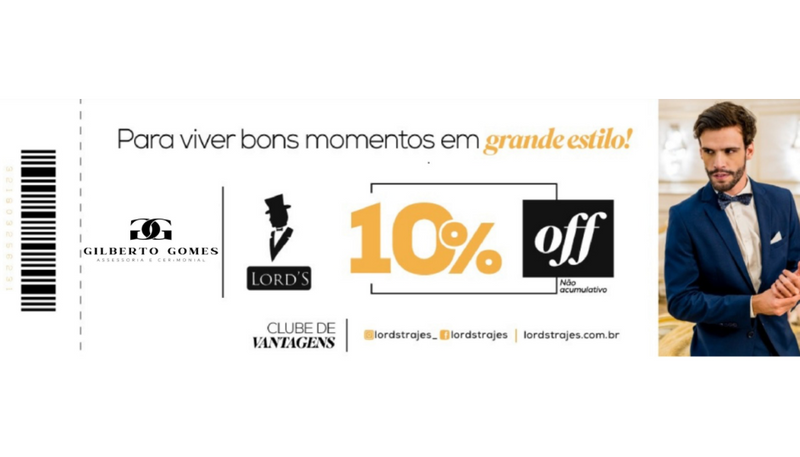 Voucher Especial - Para resgatá-lo, vá até a Lord’s, escolha o seu traje preferido e apresente este voucher para ganhar o seu desconto.